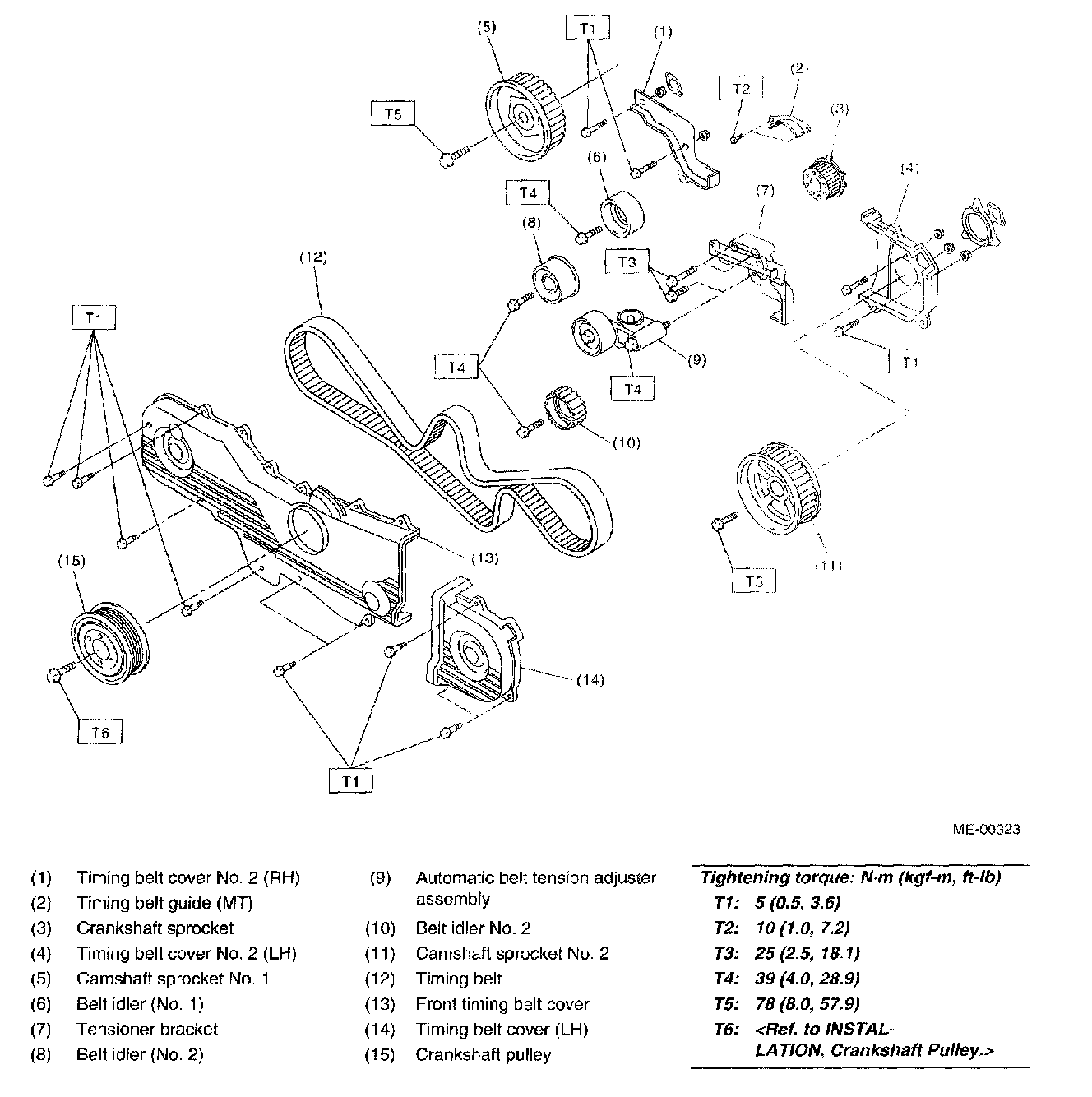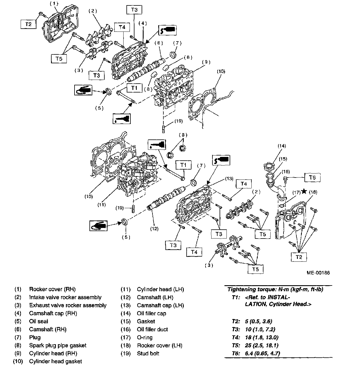 2) Tighten all bolts 29 Nm (3.0 kgf-m, 22 ft. lbs.) in alphabetical sequence. Then tighten 69 Nm (7.0 kgf-m, 51 ft. lbs.) in alphabetical sequence.