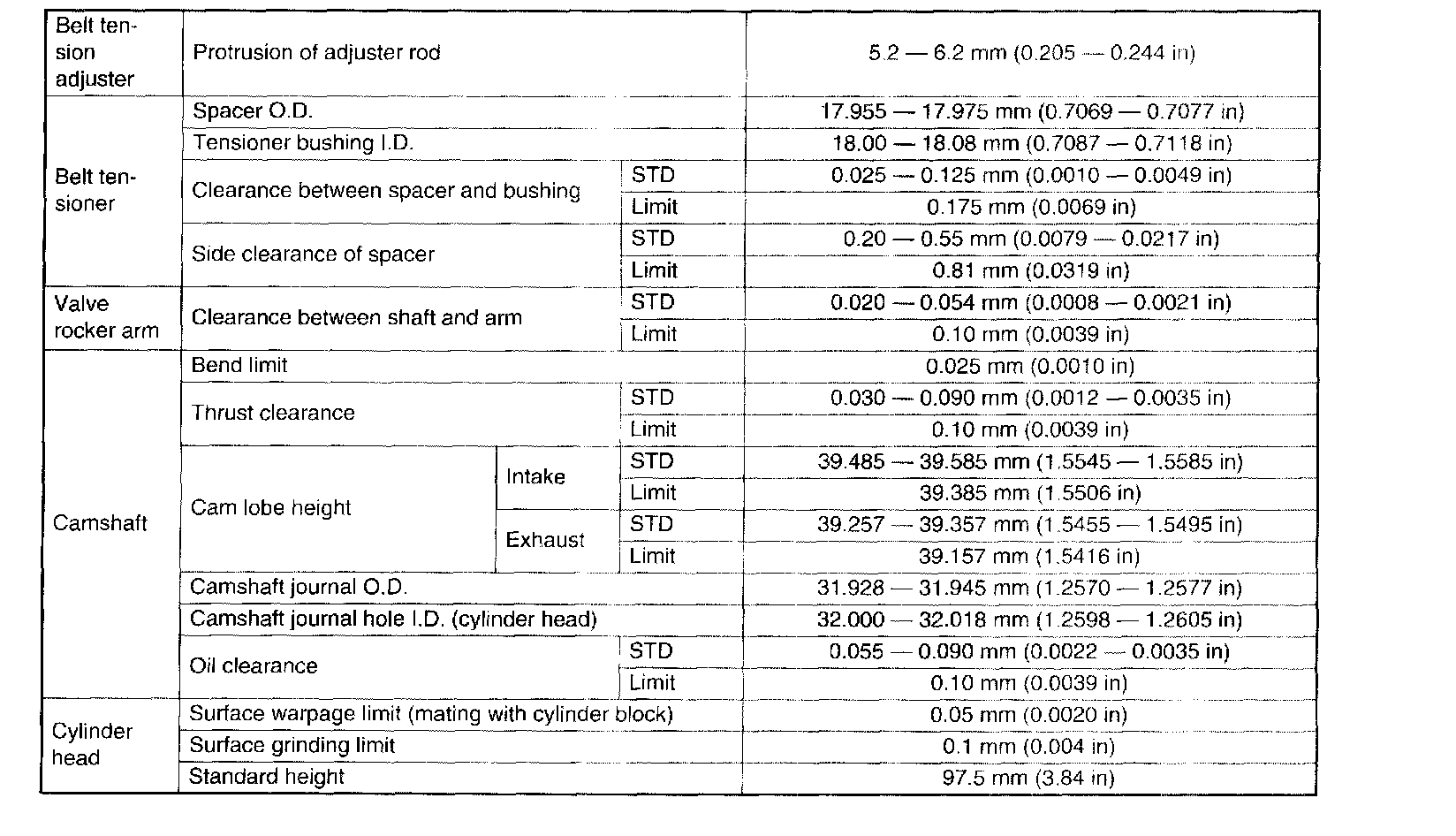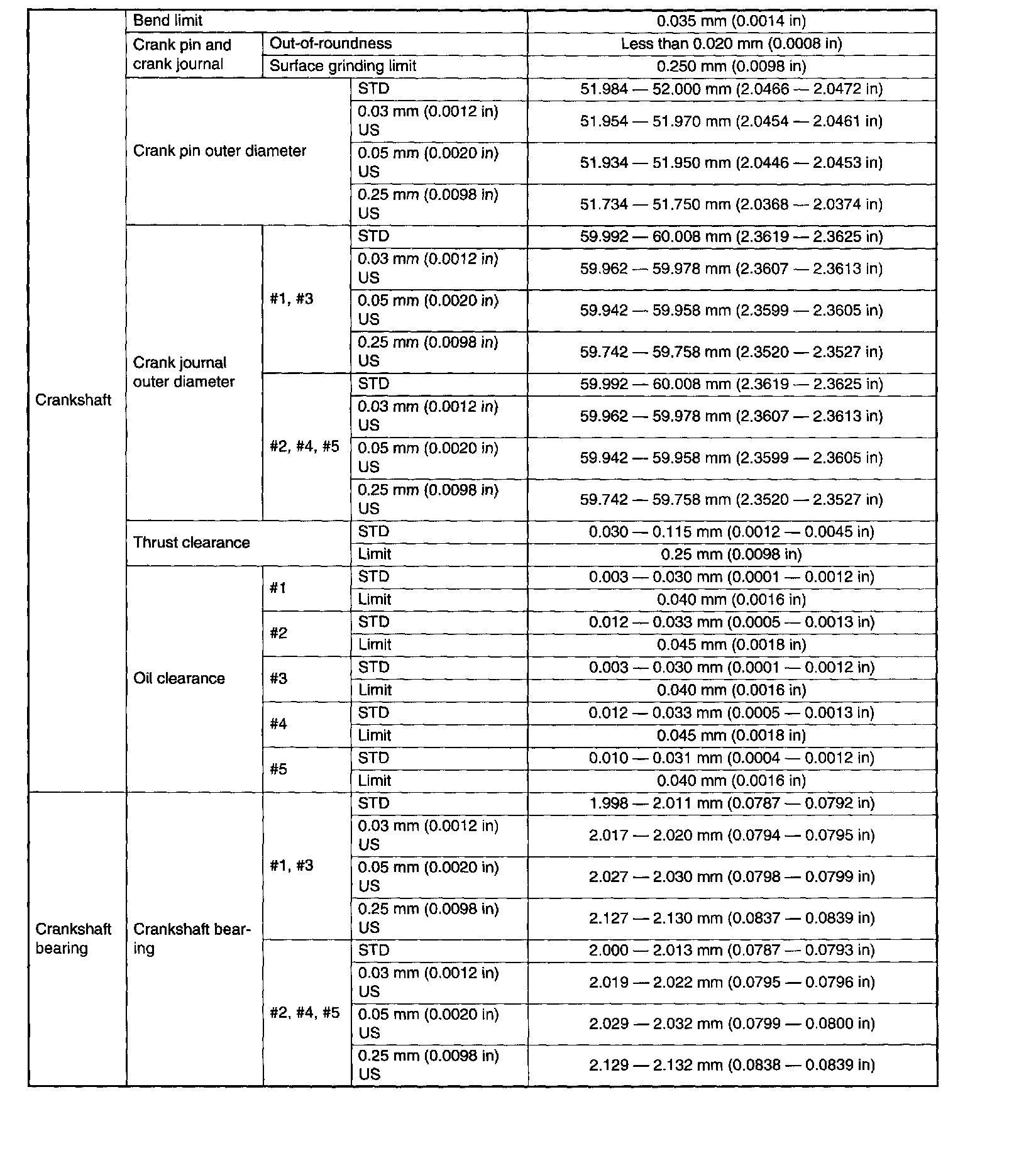 SPECIFICATIONSNOTE: US: Undersize, OS: Oversize