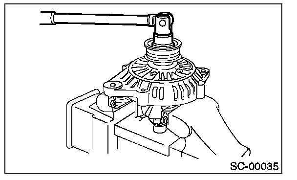 4. Hold the rotor with a vise and remove pulley nut.