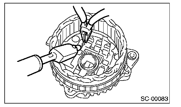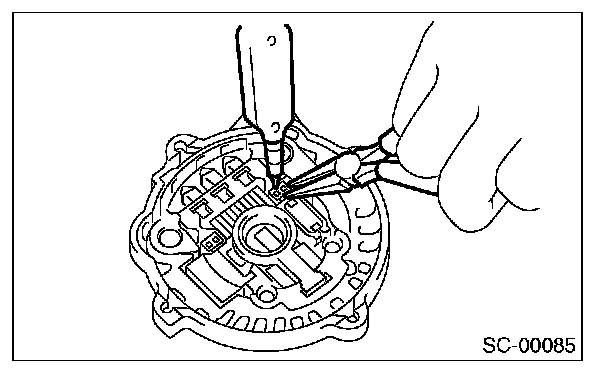 CAUTION: Do not allow a 180 - 270 W soldering iron to contact the terminals for more than 5 seconds at once because the rectifier cannot withstand so much heat.