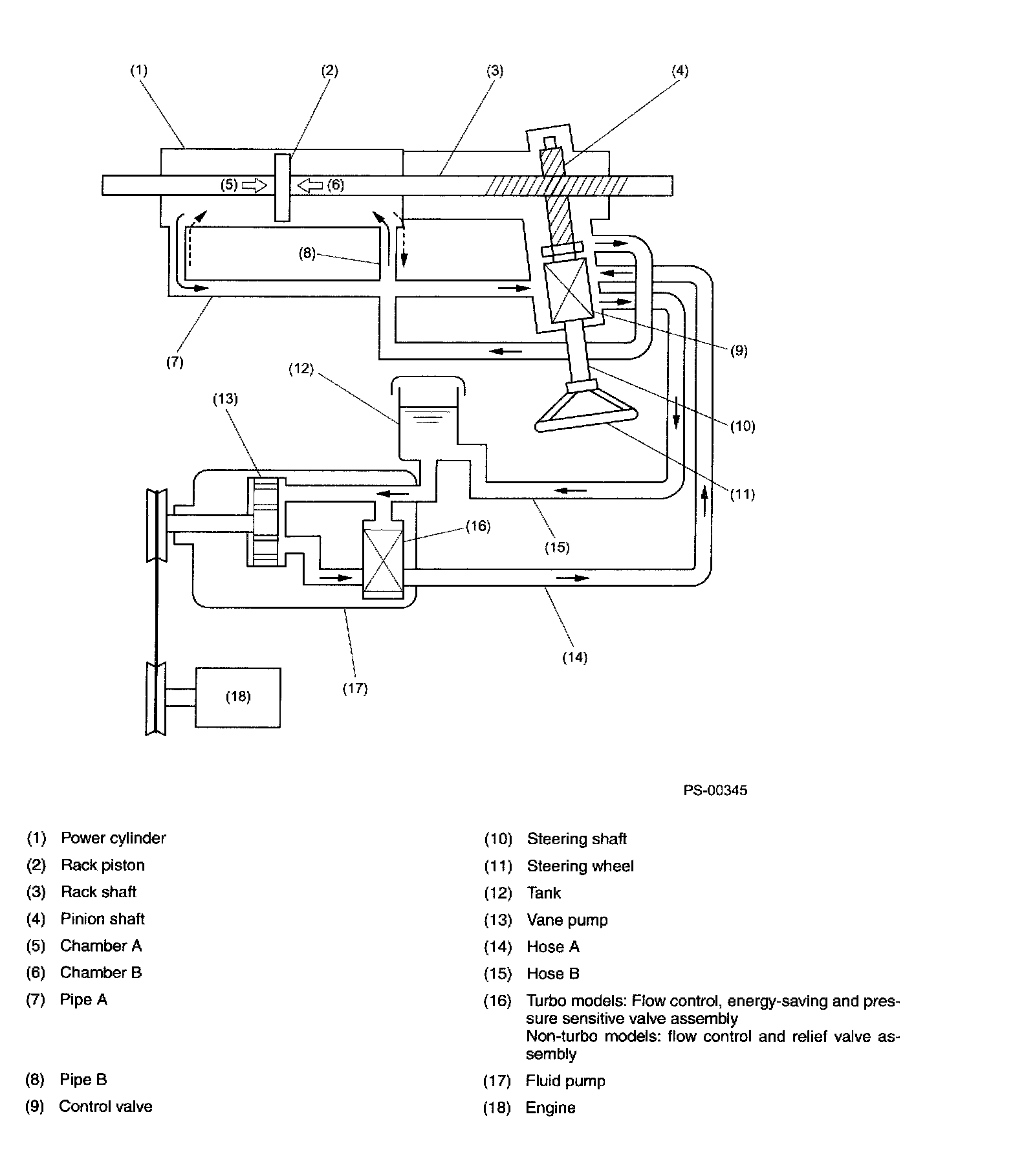 ^ The fluid pump is belt-driven by the engine. The fluid pump for the turbo models is different from that for the non-turbo models in that it has additionally an energy-saving valve mechanism. This valve mechanism reduces the rate of fluid recirculation during straight-ahead driving, which helps reduce engine load.