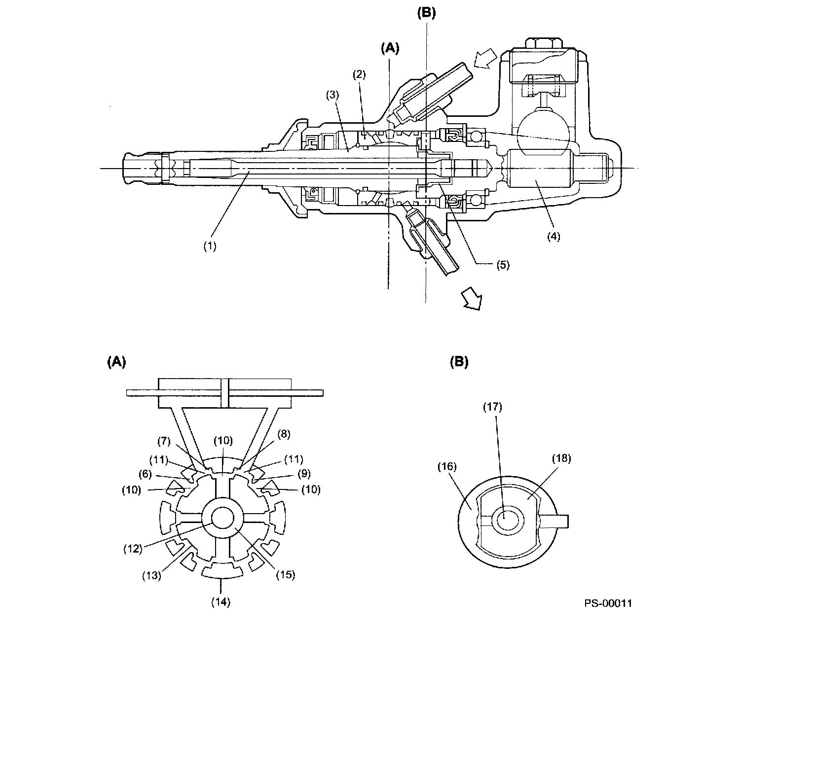 The pinion is in mesh with the rotor with adequate clearance, which enable the rack to be moved manually by rotating the steering shaft (fail-safe feature).