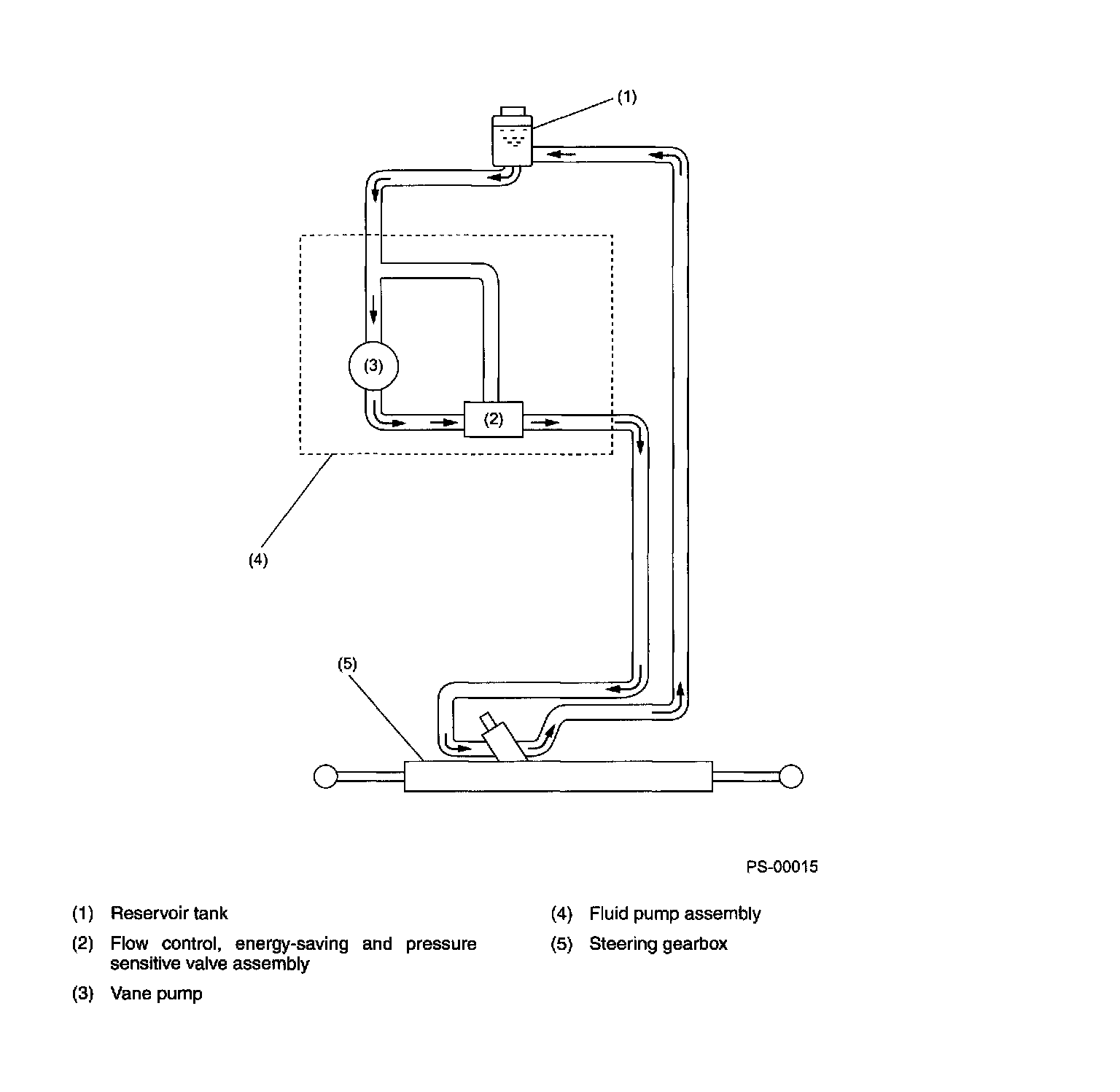 ^ When the steering wheel is not being turned, the pressure-sensitive valve in the pump opens to drain the fluid into the fluid reservoir tank (turbo models).