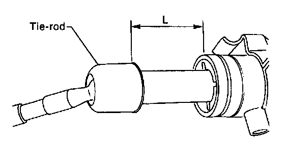 28. If the tie-rod end was removed, screw in lock nut and tie-rod end to the screwed portion of tie-rod, and tighten the lock nut temporarily in a position as shown in figure.