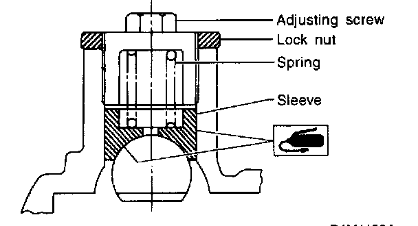 20. Apply grease to the sliding surface of sleeve and spring seat, then insert the sleeve into the pinion housing. Fit the spring into the sleeve screw, pack grease inside of screw, then install the screw.