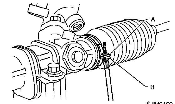 30. Inspect the gearbox as follows: "A" Holding tie-rod end, repeat lock to lock two or three times as quickly as possible. "B" Holding tie-rod end, turn it slowly at a radius one or two times as large as possible. After all, make sure that the boot is installed in the specified position without deflation.