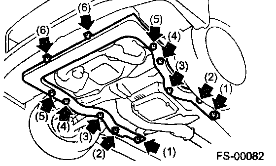 NOTE: Loosen bolt (1) and leave a few threads caught, then remove the bolts in the order of (2), (3), (4), (5), and (6).