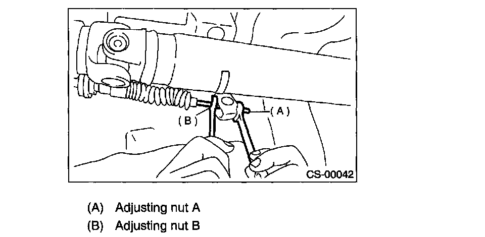 9) While preventing the adjusting nut B from moving with a wrench, tighten adjusting nut A.