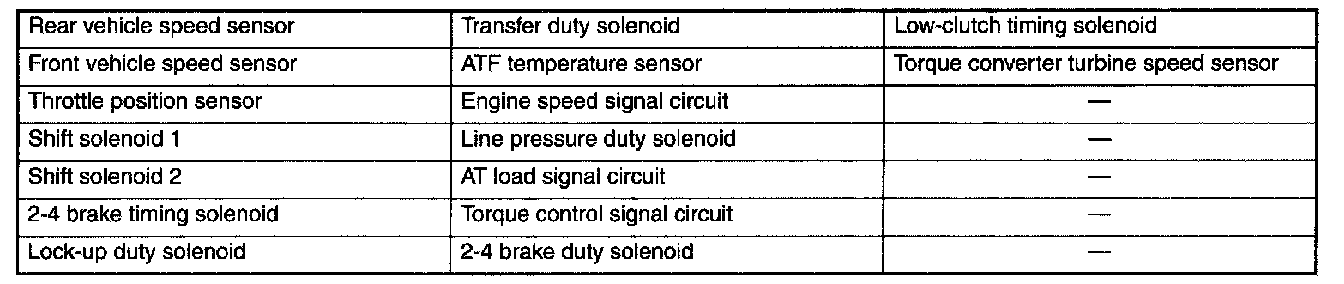 The on-board diagnostics system detects and stores in the form of a code a fault that has occurred in any of the following input and cutout signal systems.