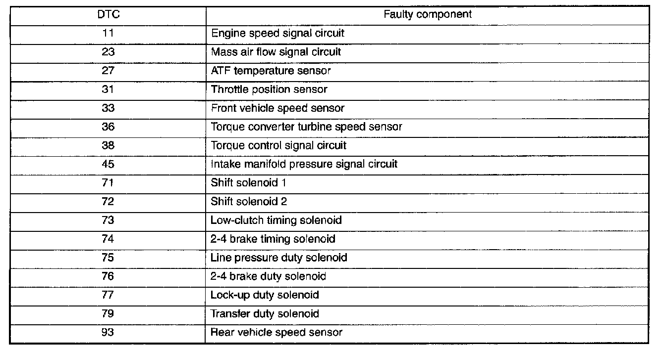 If a fault has been detected, the system tells the fault by causing the AT OIL TEMP warning light to operate as follows: