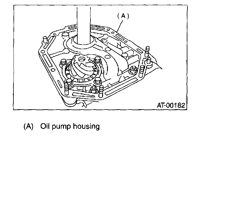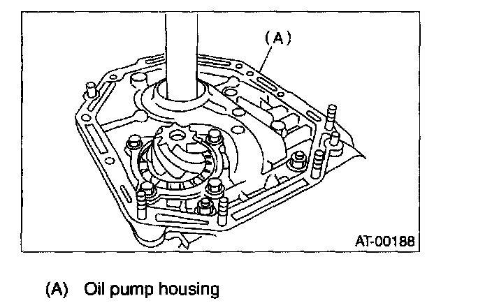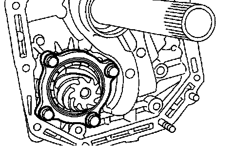 5) After correctly installing the new gasket to the case mating surface, carefully install the oil pump assembly. Be careful to avoid hitting the drive pinion against the inside of the case.