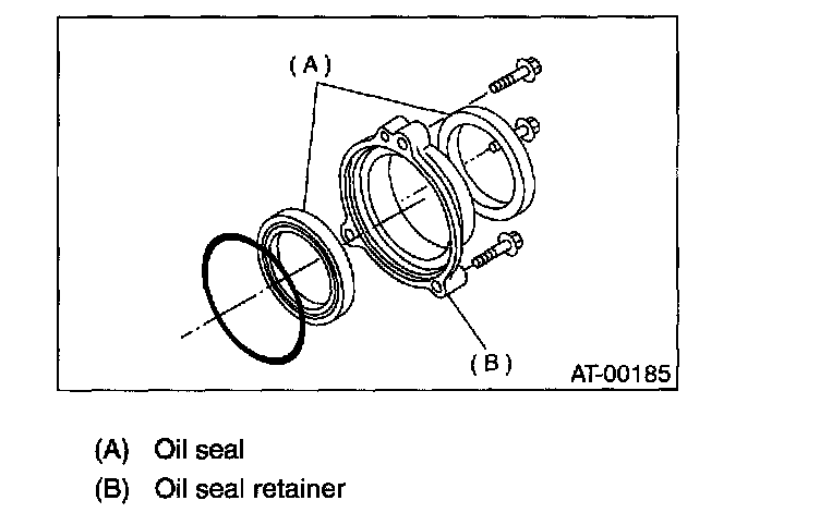 5) Install the oil seal retainer taking care not to damage the oil seal lips. Then secure with three bolts.