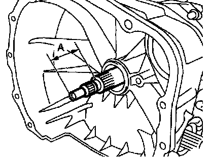 1) Using the ST, measure the distance from the end surface of ST to the recessed portion "L" of the high clutch drum.
