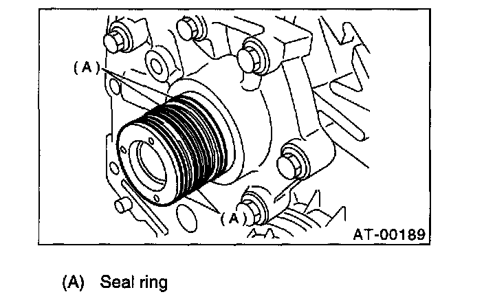4) Attach the new O-ring to the oil seal retainer with petrolatum. Install the seal to the oil pump housing bore.