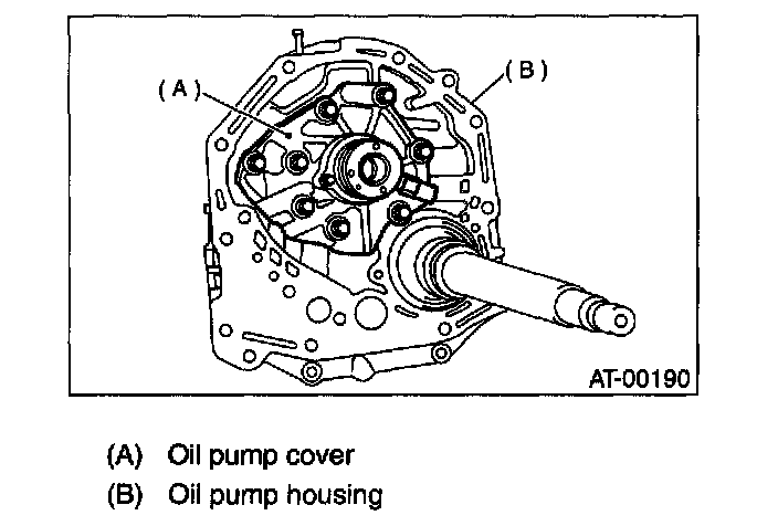 16) Remove the oil pump housing and adjusting thrust washer.