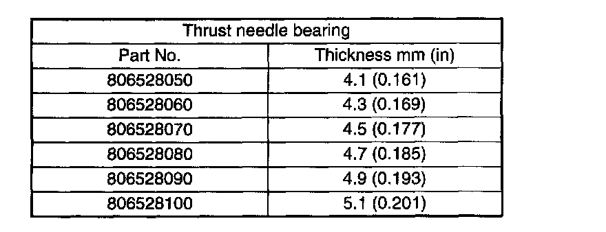Select suitable bearing race from among those listed in this table so that clearance C is in the 0.25 to 0.55 mm (0.0098 to 0.0217 inch) range.