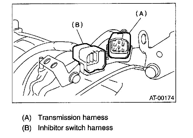 5) Lift-up lever behind the transmission harness connector and disconnect it from stay.