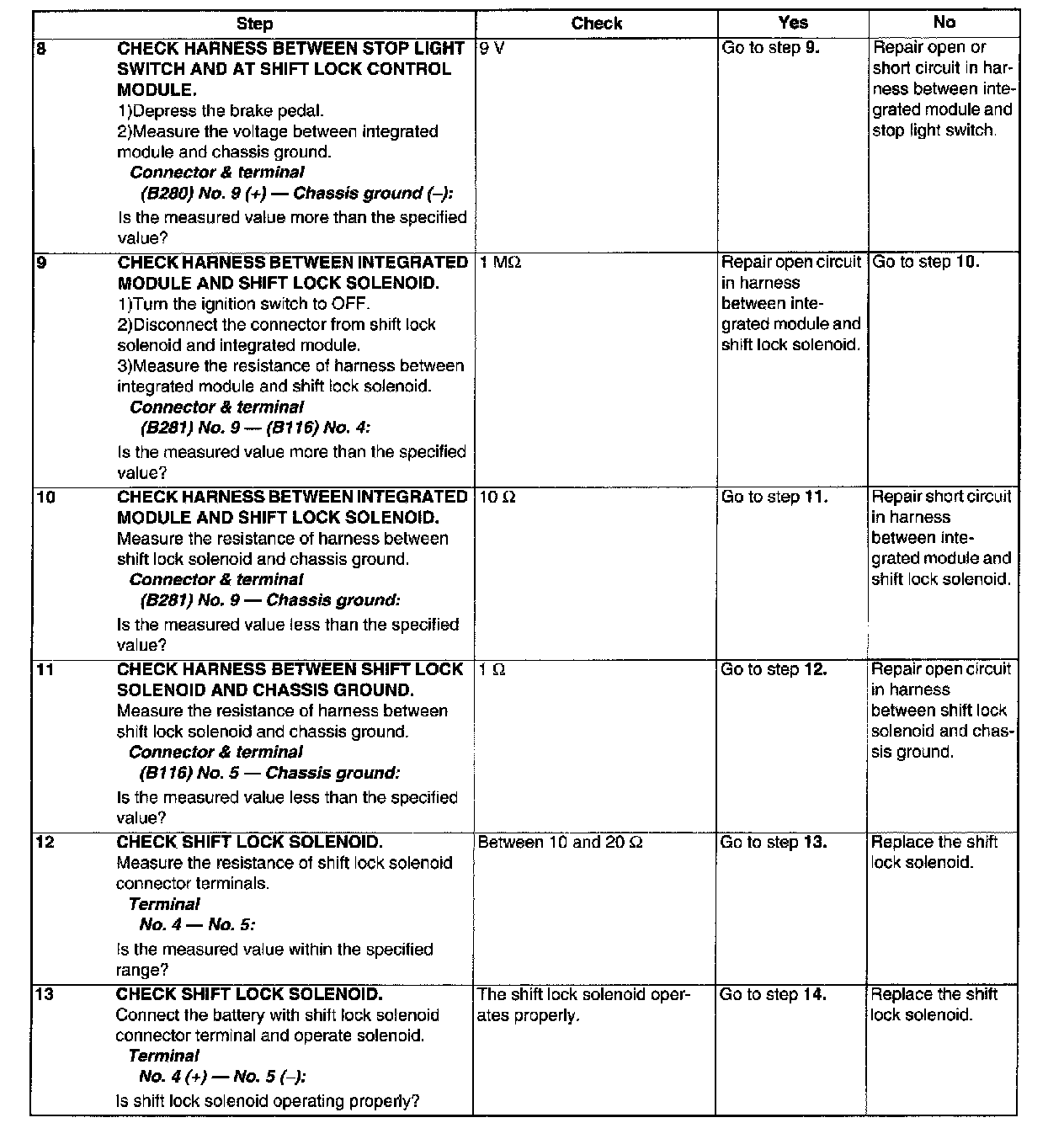 Select Lever Shift Lock Cannot Be Released
