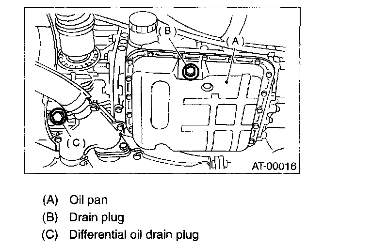NOTE: Tighten the ATF drain plug after draining the ATF.