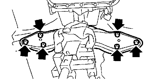 15) Remove the transmission rear crossmember bolts.