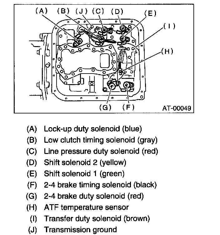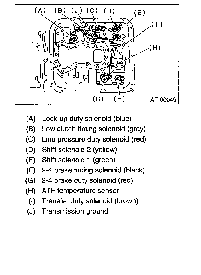 20) Disconnect the duty solenoid connectors and remove the ATF temperature sensor. Remove the connectors from clip and disconnect the connectors.