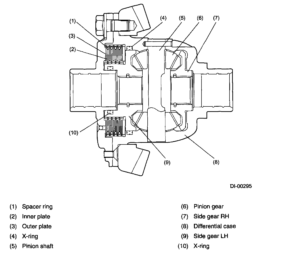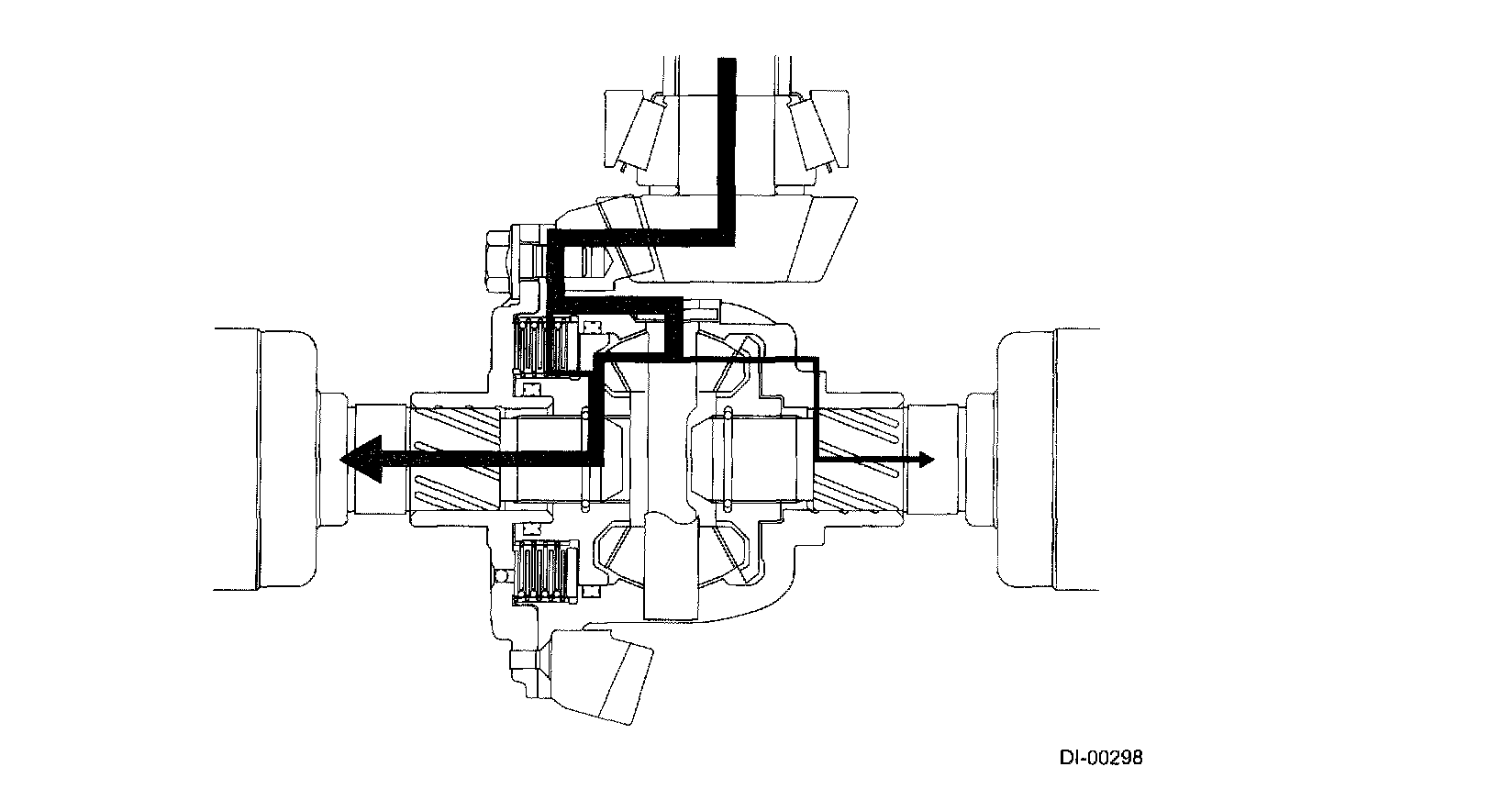 The space between the differential case and the left side gear is filled with a mixture of high viscosity silicone oil and air and hermetically sealed with X-rings.