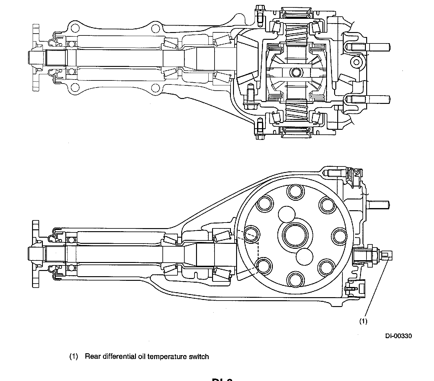 Moreover, the rear differential oil temperature switch opens when the rear differential oil temperature exceeds 150° C (302° F) causing the rear differential oil temperature warning light in the combination meter to turn on and switch the center differential in the transmission toward differential lock operation.