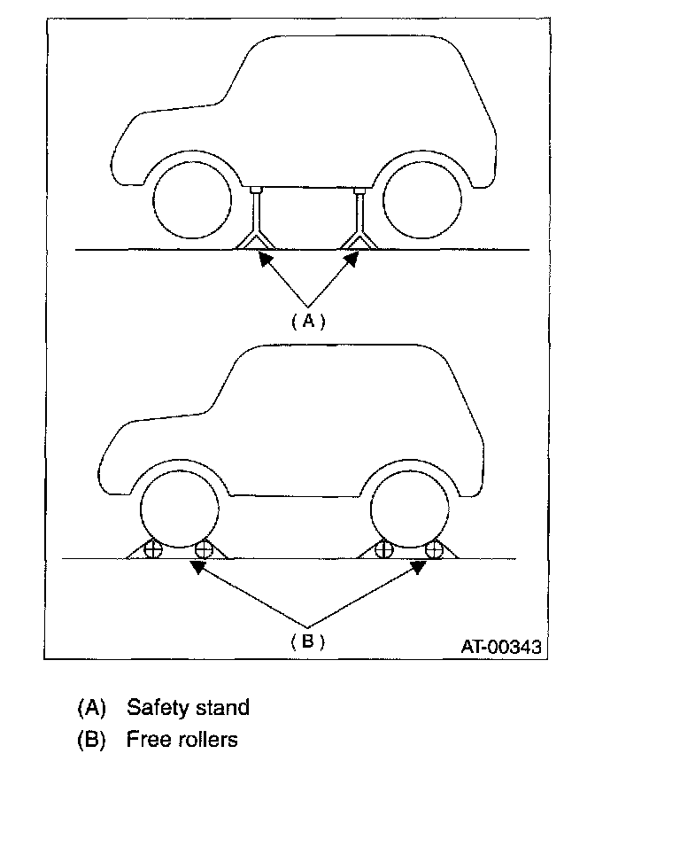 ^ Do not abruptly depress/release clutch pedal or accelerator pedal during works even when the engine is operating at low speeds since this may cause vehicle to jump off free rollers.