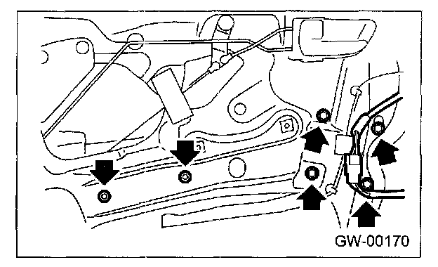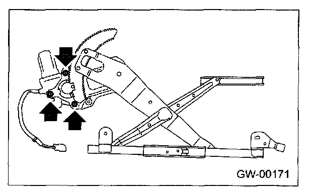 4. Loosen four bolts and two nuts to remove the regulator assembly.