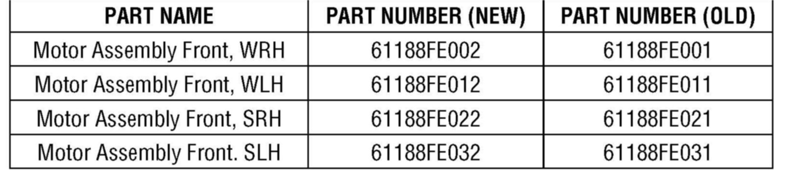 The purpose of this bulletin is to inform you that the wiring harness of the front door power window motor has been shortened. When replacing with the new style, it will be necessary to reroute and secure the harness.