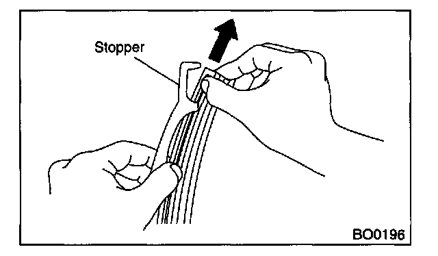 Pull on side (A) of the wiper rubber stopper and remove the rubber from the blade assembly.