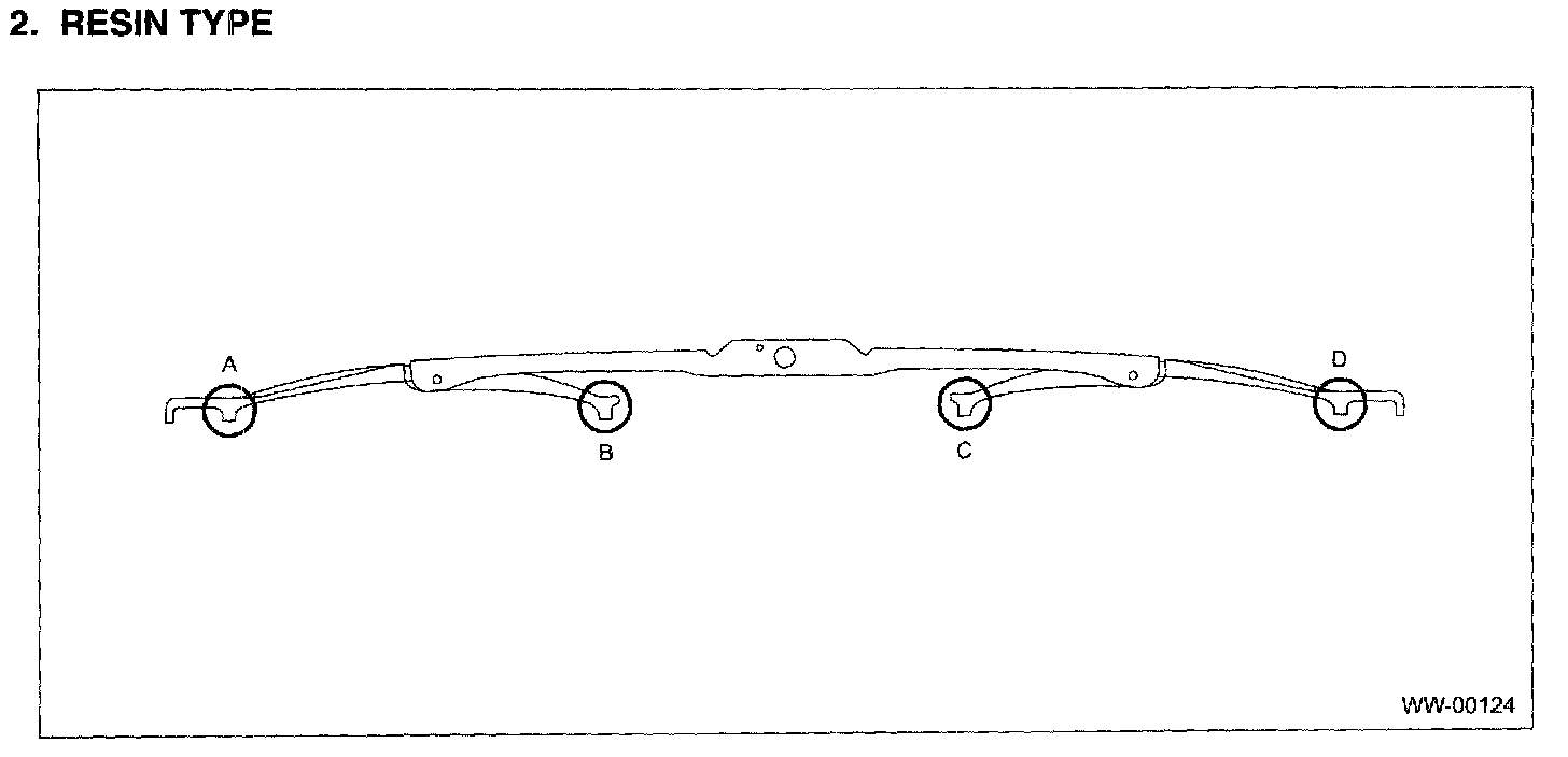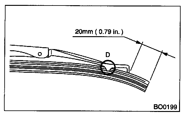 1. Insert the wiper rubber onto the blade so that the stopper is in the position shown.