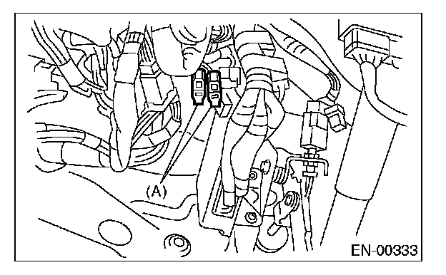 5. Connect the test mode connector (A) at the lower portion of instrument panel (on the driver's side).