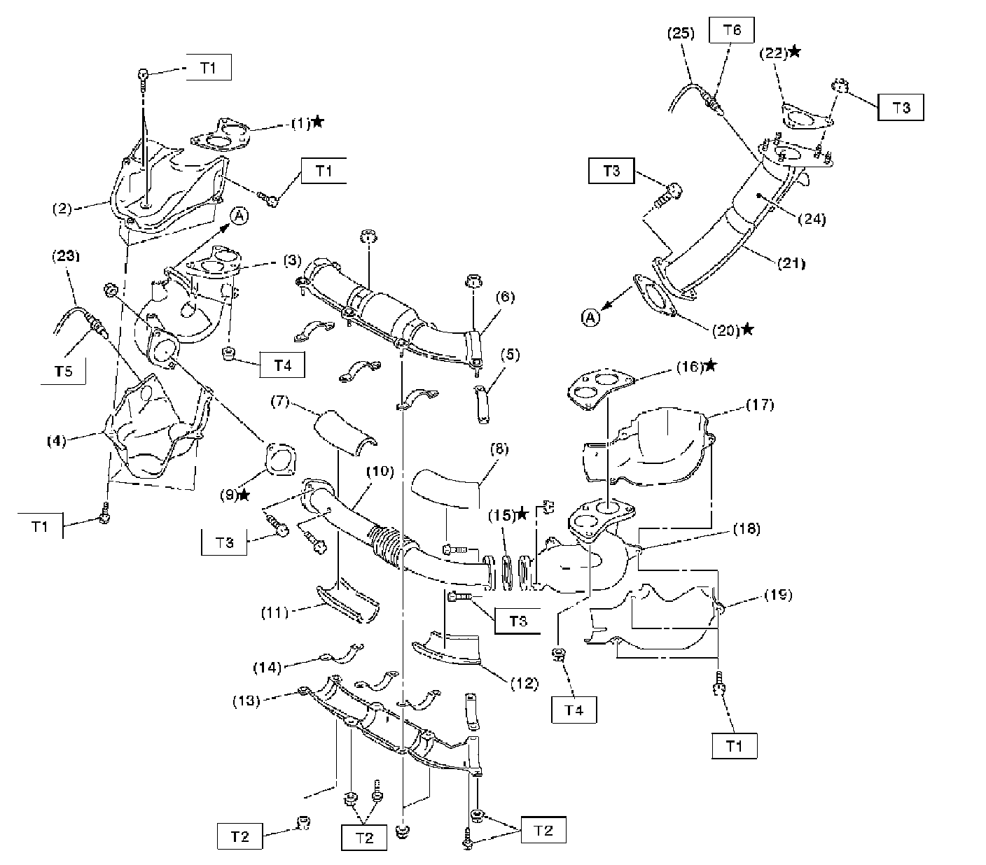Connect the exhaust manifold (RH) to turbocharger joint pipe.