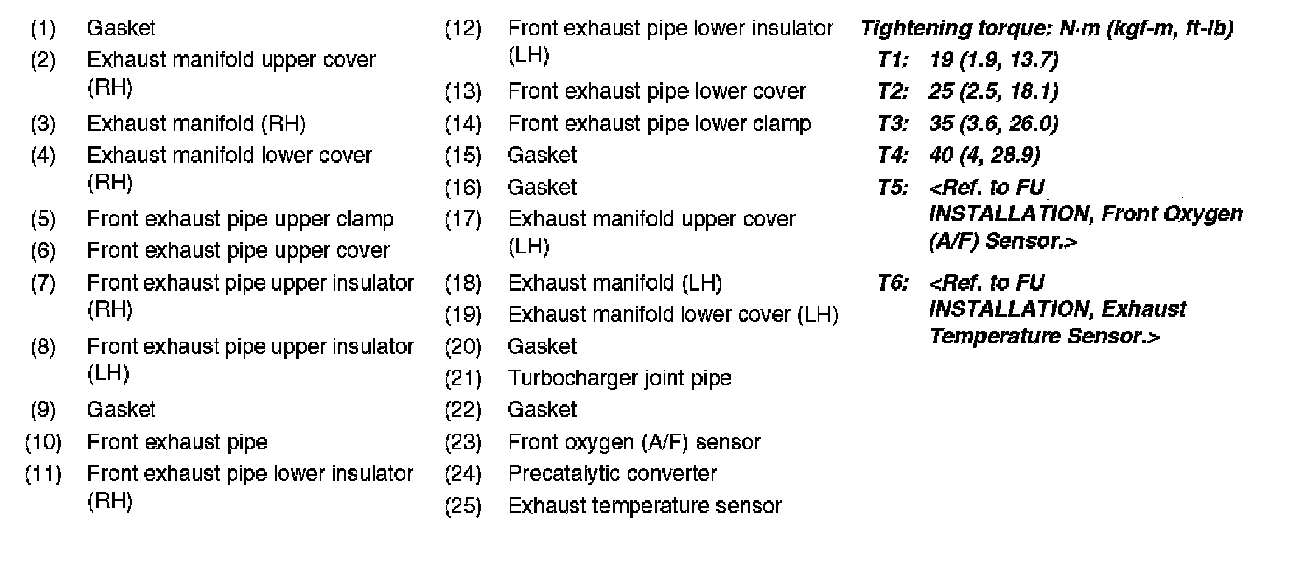 Install the upper exhaust manifold cover (RH).Tightening torque 19 Nm (1.9 kgf-cm, 13.7 ft. lbs.)