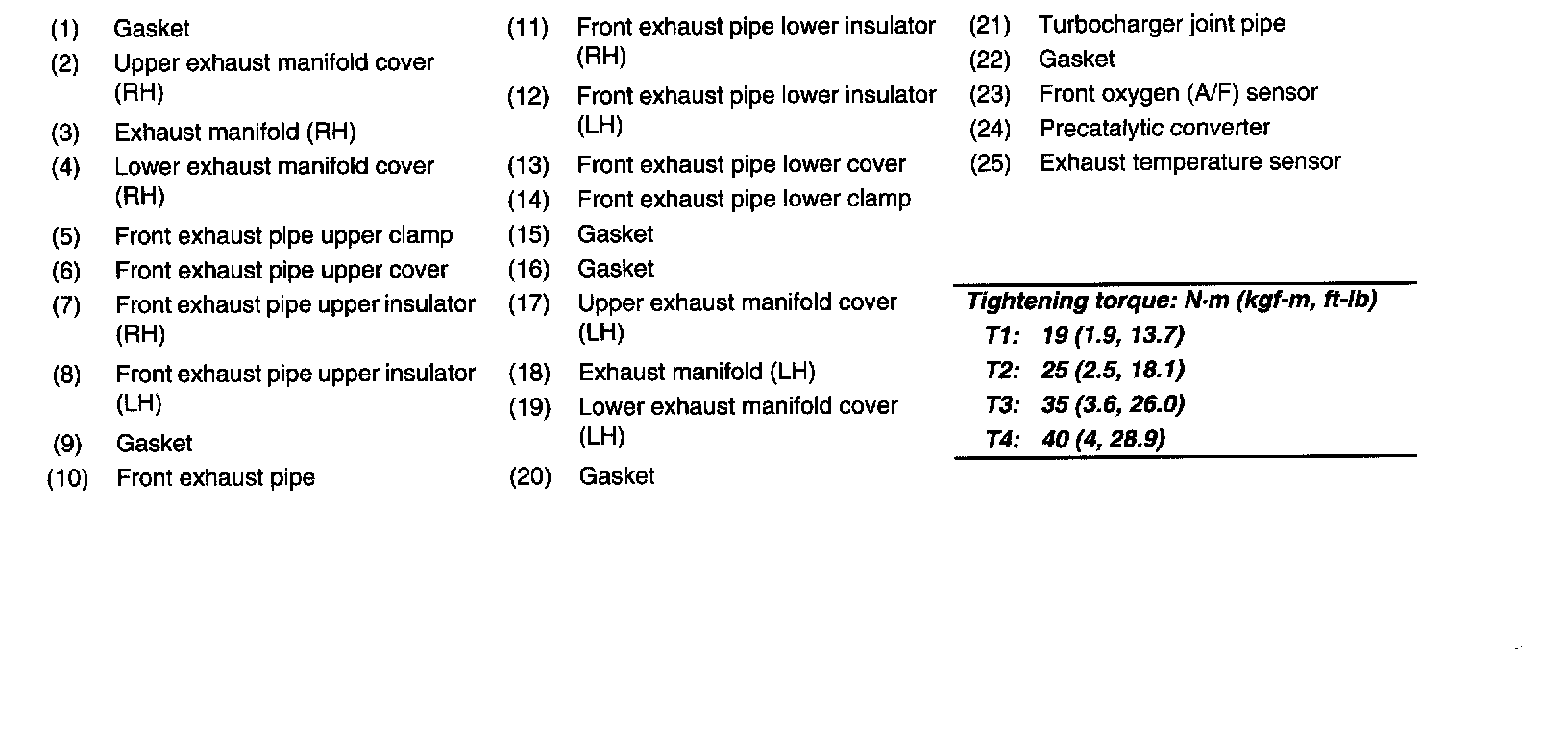 T2 (c,d, e, f) 20 Nm (2.0 kgf-m, 14.5 ft. lbs.)