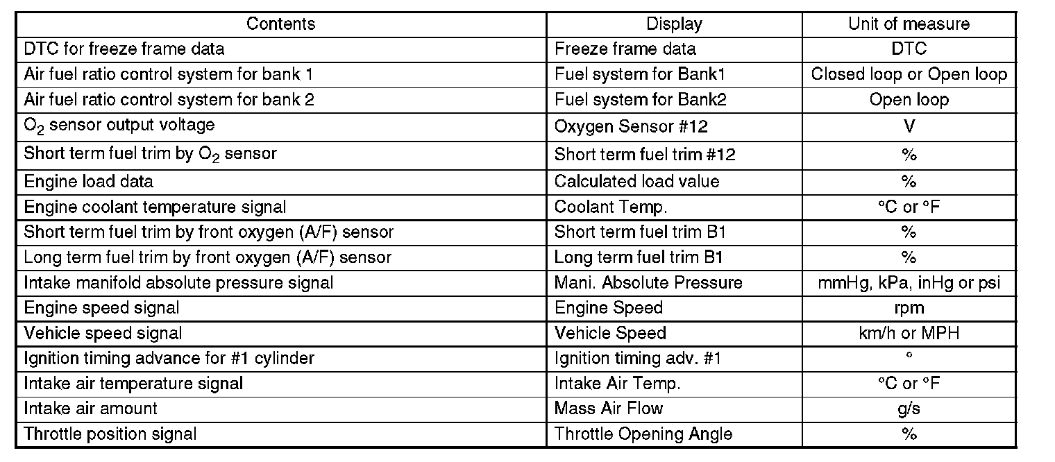 6. READ FREEZE FRAME DATA FOR ENGINE. (OBD MODE)