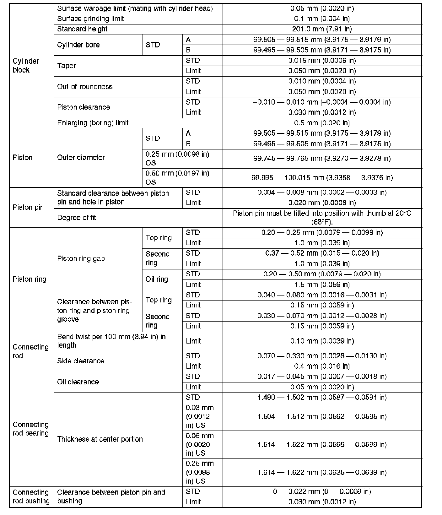 0.25 mm (0.0098 inch) OS 99.745 - 99.765 mm (3.9270 - 3.9278 inch)