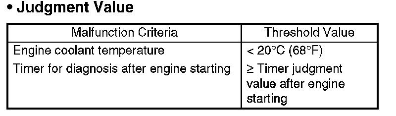 Time Needed for Diagnosis: To be determined. (It is varied by the Min. engine coolant temperature and engine conditions such as vehicle speed and engine coolant temperature.)