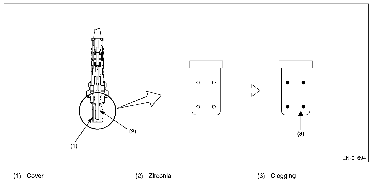 Detect time-lag of front oxygen (A/F) sensor response. Front oxygen (A/F) sensor cover has some ventilation holes for exhaust gas. Clogged ventilation holes are diagnosed. When the holes are clogged, the A/F output variation becomes slow comparing with the actual A/F variation because oxygen which reaches the zirconia layer is insufficient. Therefore, if the cover has clogged holes, the rich to lean judgment in ECM is delayed when the change from rich to lean is caused.