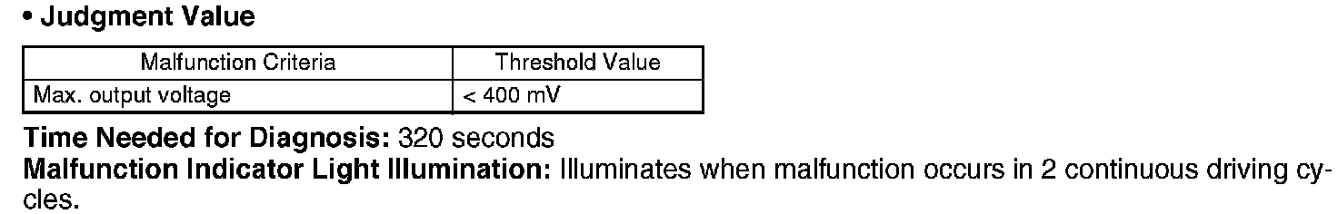 Detect the malfunction of oxygen sensor open or short circuit. Judge NG when the oxygen sensor voltage may be abnormal from oxygen sensor voltage value with considering the conditions such as intake air amount, engine coolant temperature, main feedback control.