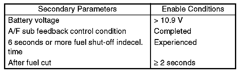 Perform the diagnosis only once when fuel shut-off in deceleration after rapid acceleration. (Pay attention to oxygen sensor voltage for the timing of deceleration.)