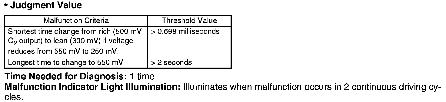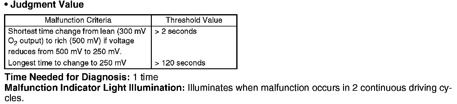 1. Judge Normal when the response time (diagnostic value) is smaller than threshold (judgment value) when changing to lean since O2 sensor voltage.