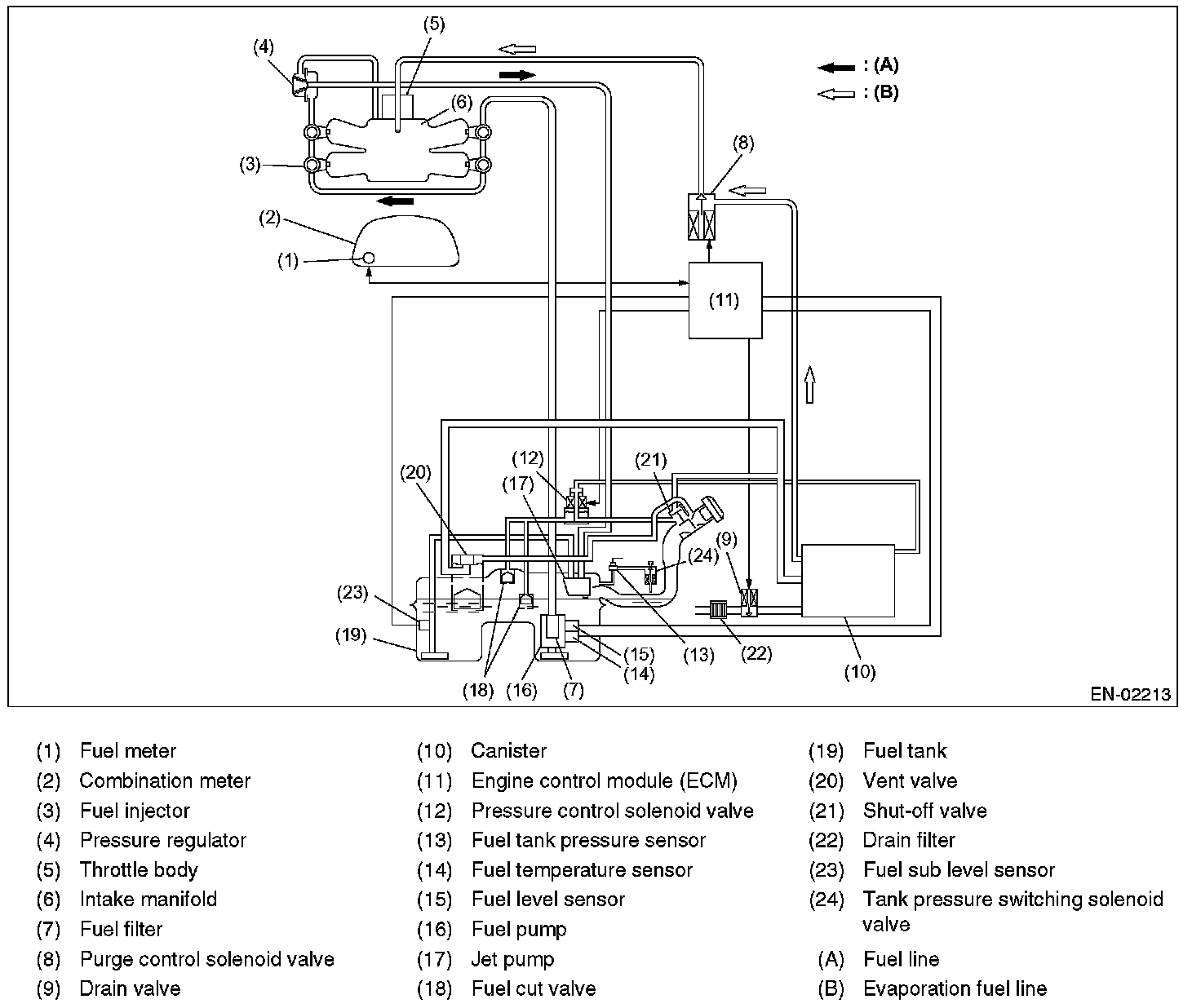 Fuel system is diagnosed by comparing the target air fuel ratio calculated by ECM with the actual air fuel ratio measured by sensor.
