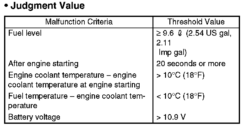 Normally fuel temperature is lower than engine coolant temperature. When the fuel temperature becomes higher than the engine coolant temperature, the range is considered to be shifted, and make an NG judgment.