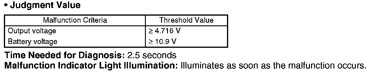 Judge NG when the continuous time of completing the malfunction criteria becomes more than 2.5 seconds.