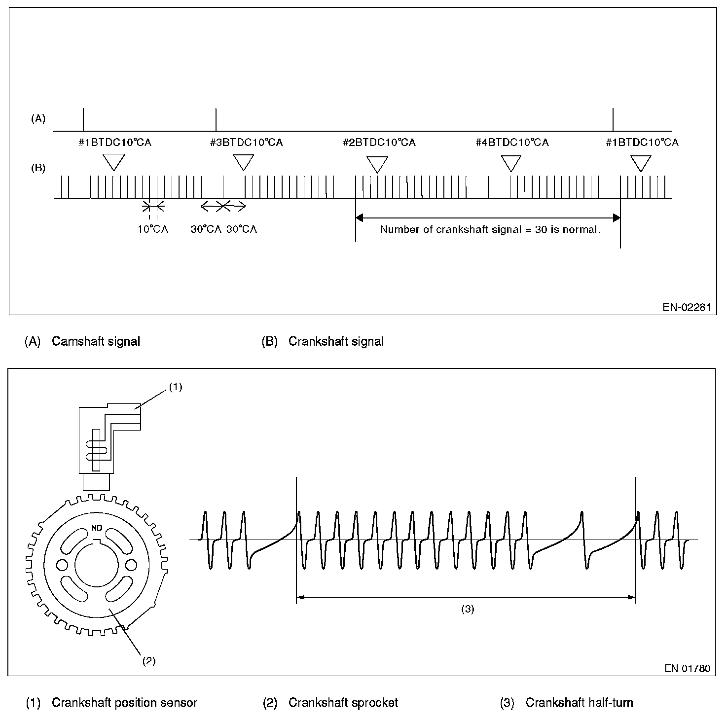 Detect the malfunction of crankshaft position sensor output property. Judge NG when the number of crankshaft signal every 1 revolution becomes abnormal.
