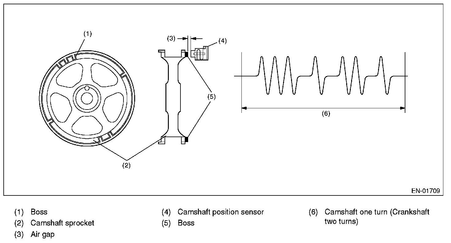 Compare the normal crankshaft position sensor signal with normal camshaft position sensor signal. When each input number does not correspond, judge NG.