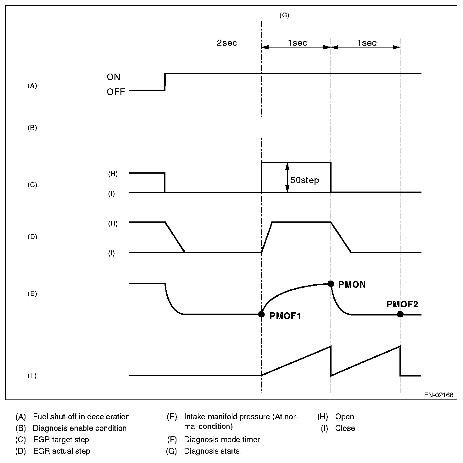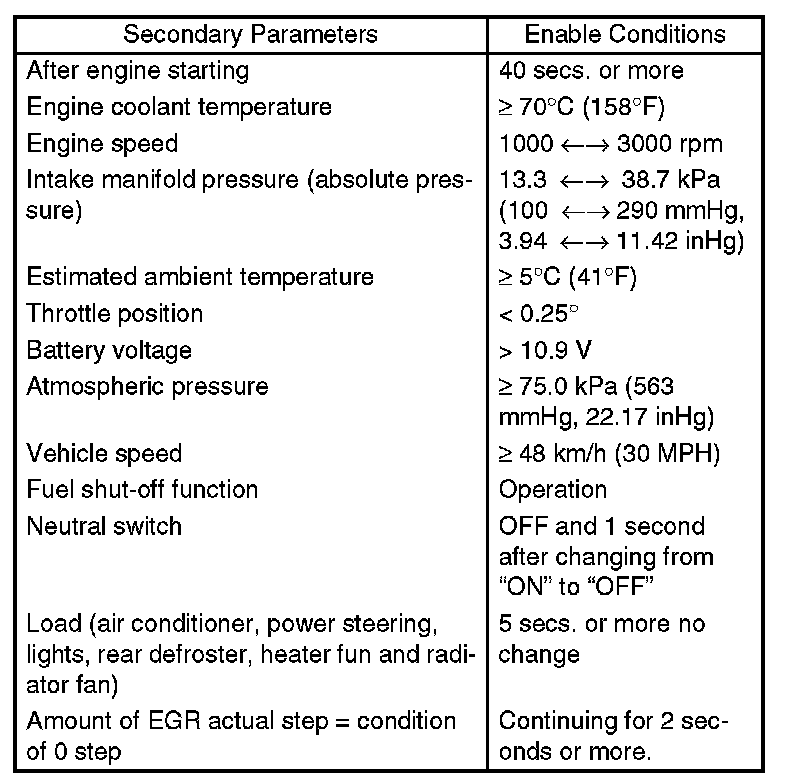 2. PMON is equal to the intake manifold pressure in 1 second after EGR target step is set 50 steps (when enable conditions are completed), and EGR target step is set to 0 step.