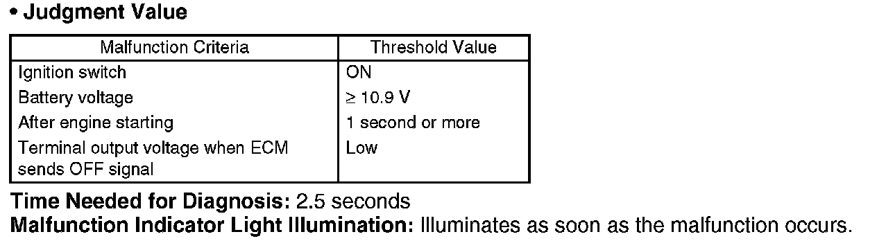 Judge NG when the continuous time of completing the malfunction criteria becomes more than 2.5 seconds.